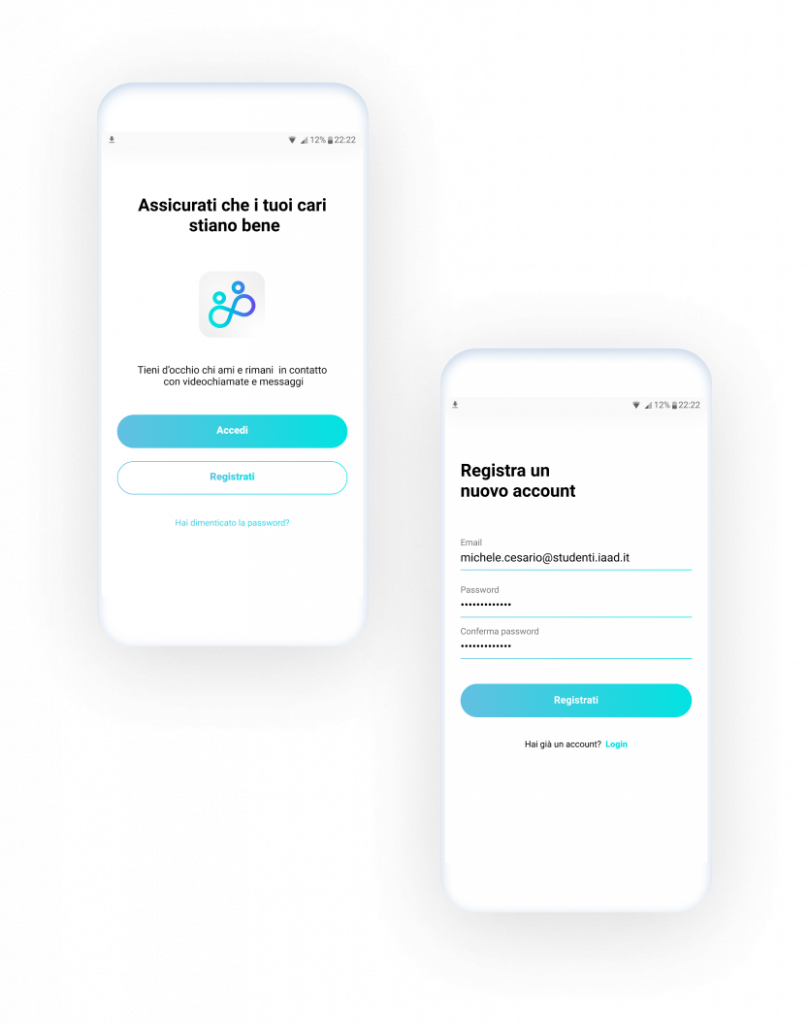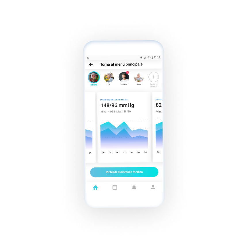 Care App Mobile app providing new solution to the procedure of medical consultation on boarding The Challenge Interviews and questionnaires showed that caregivers lose hours in transferts to assist loved ones. About Solutions Wearable devices monitor the patient’s vital signs.The connected app shows the patient’s health progress in real time to the caregiver Purpose Monitor multiple contacts simultaneously.Receive notifications and request medical attention for a distant patient.Set riminders for your patients and keep track of the history of the situation Benvenuti Login and register